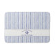 Welcome your friends and family aboard your boat or cottage home with this bath mat. This nautical striped monogram boat name design features classic blue pinstripes and a compass rose emblem. Personalize with your boat's name and available in a collection of nautically themed items. Perfect for grilling on your boat or back yard, boat lovers, coastal homes, or seaside entertaining. Stylish and personalized, this nautical design adds a crisp maritime touch to everyday use.