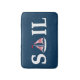 Ilustracion de diseño de textos náuticos con decoración de veleros de fondo azul oscuro. Es posible cambiar el color de fondo y añadir uno diferente al diseño con su elección.