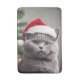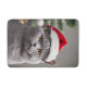 Un gatito de pelo corto británico azul/gris con un sombrero de Santa.