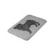 El original ilustracion personalizado de Destei de un adorable perro de raza Pug color abrigo negro. El perro está parado y mirando hacia el espectador. La cola está ondulada en la parte superior de la espalda del perro. La boca del perro está cerrada y el color de los ojos es marrón. El color de fondo es gris con una textura decorativa clara que se puede eliminar, si así lo desea.