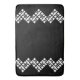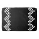 Patrón de borde blanco y negro con una decoración geométrica sencilla, perfecta para añadir un ambiente retro a tu hogar. El diseño presenta cuadrados simétricos dispuestos en hileras horizontales de zag en el lado izquierdo de cada baldosa, creando un contraste elegante contra un fondo negro sólido.