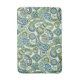 Una alfombra de baño con un diseño paisajista clásico en tonos azules y verdes con un toque de oro.