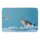 Gran pez saltando del agua en el poste de pesca sobre fondo azul acuático. Se puede cambiar el color de fondo para que coincida con la decoración del cuarto de baño.