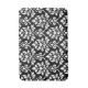 Damasco espumoso en un diseño de superficie de estilo vintage con detalles blancos sobre un fondo negro.
