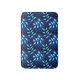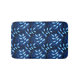 Estera de baño de planta azul con un patrón botánico hecho de un ilustracion vector de bonito de un motivo floral de una planta con hojas azules y una red blanca sobre ellas bellamente arreglada sobre un patrón ligeramente transparente de la misma baldosa sobre fondo azul oscuro.