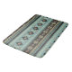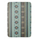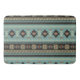 El patrón inspirado en la manta indígena estadounidense/tribal presenta diseños geométricos. Paleta: marrón, naranja, azul cielo y blanco crema.