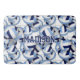 Esta fresca alfombra de baño de voleibol presenta un patrón de variado tamaño de la marina, bolas de voleibol azul claro y blanco a diferentes profundidades sobre un acento de detalle de red - personalizado con su nombre - se puede personalizar el color del fondo blanco - por katz_d_zynes