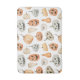 Este diseño presenta un cautivador patrón de acuarela de calabazas y lámparas jack-o' en una suave paleta de colores mullidos. El diseño se compone de varias formas y tamaños de calabaza, pintadas en suaves tonos naranja, crema y gris. Cada jack-o'-lantern tiene una cara tallada única, que va desde feliz y amigable a ligeramente espeluznante, añadiendo carácter y variedad al patrón. Las calabazas están dispuestas sobre un fondo blanco y limpio, lo que permite destacar las delicadas texturas acuáticas. El diseño general es a la vez festivo y adorable, perfecto para capturar el espíritu caprichoso de Halloween de una manera acogedora y artística.