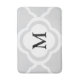 Un elegante diseño floral marroquí de quatrefoil gris y blanco con un monograma de personalizable. Personalízalo fácilmente cambiando el monograma de la plantilla en el campo de plantilla con sus propias iniciales. Disponible en una variedad de opciones de color en el almacén de patrones de puntos y rayas. Decoración casera a juego.