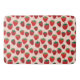 Un dulce patrón de fresas jugosas y las flores blancas de la planta están esparcidas por un fondo rosa pálido rosa. Esta alfombra de baño es una divertida adición a la decoración de tu casa para los amantes de los dulces, rojos y de las frutas.
