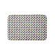 El patrón retro de esta alfombra de baño está compuesto de gafas de sol gráficas en un estilo de gato de los años 60 en tonos rosa, azul y amarillo.