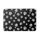 Impresión de la pata blanca sobre el fondo negro con puntos