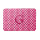 Una alfombra de baño de estilo Art Déco basada en el patrón tradicional de olas que a menudo se ve en los textiles japoneses, en los colores rosa fucsia ricos y los tonos suaves de rosa coral, con monograma