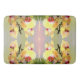 El hermoso patrón en esta Mat Bath se hizo a partir de una fotografía original de HomeWare de orquídeas amarillas a la luz del sol de la tarde. Las flores de orquídea tienen pétalos de color amarillo pálido con centros de color rojo a morado. Un tallo verde oscuro serpentea por el centro de las flores. El fondo pastel se compone de tonos rosas que se mezclan con el verde pálido. En un rincón se pueden ver algunas hojas verdes de una planta de aloe. Cuando la foto se combina para hacer el patrón, el diseño floral se convierte en un jardín de orquídeas con el resplandor rosa del sol de la tarde en el centro.