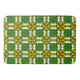 El diseño geométrico vibrante presenta formas llamativas y coloridas con motivos florales simétricos, que ofrecen un toque animado y artístico.