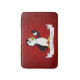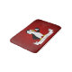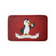 Diseño personalizado con ilustracion de pingüino lindo con bola de nieve sobre fondo rojo; diseño para niños por Maxi Harmony, con plantilla de texto de personalizable