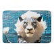 Esta alfombra de baño tiene obras de arte de león.