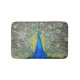 Salga de la ducha en esta alfombra de baño de temática natural y acogedora que cuenta con una foto de un hermoso pavo real azul con plumas de plumas coloridas. Seleccione su tamaño de alfombra de baño.