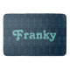 Denim alfombra de color azul para su perro mascota. El patrón o el nombre son extraíbles. El texto se puede personalizar según el nombre de su propio mascotas.