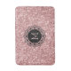 Elegante y simple impresión de textura purpurina color salmón rosa. Círculo geométrico negro con monograma personalizado
