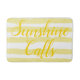 Sunshine Call está escrito en amarillo brillante. patrón rayado horizontal amarillo claro y blanco. Moda de baño de moda Guay con un ambiente de playa para la primavera más cálida y los meses de verano para la decoración divertida. Diseños originales © TamiraZDesigns