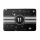 Las rayas de carreras plateadas sobre un cielo negro nocturno lleno de brillantes estrellas blancas presentan su monograma, sus iniciales o su número de suerte. Al momento de escribir este artículo, el número de carrera con más victorias es de 11. Editar para cambiar las franjas, el fondo y el texto personalizado a los colores que desee. Reemplace la imagen transparente de marcador de posición para añadir rayas de autos de carrera y destellantes estrellas sobre su propia foto especial de fondo. Visite nuestra tienda para ver más regalos geniales para los aficionados a las carreras, los amantes de los autos y los entusiastas de la conducción. ♡ Idyllfire