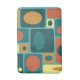 Este patrón abstracto de inspiración retro tiene un fondo turquesa y varios tamaños de rectángulos en amarillo y naranja.