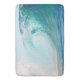 Estera de baño con una foto de una ola de surfing azul fresca y grande que se rompe en el Océano Pacífico. El conjunto tiene una fuerte asociación de frescura, limpieza y relajación.