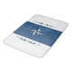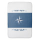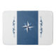 Un cartel vertical azul contiene una brújula central, flanqueada por flores simétricas y decorativas a cada lado. El diseño combina formas geométricas con patrones de curvatura intrincados para una composición náutica.