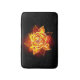 Rosa en llamas del fuego y la llama sobre fondo negro.