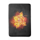 Rosa en llamas del fuego y la llama sobre fondo negro.