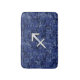 Un cromo como el símbolo zodiaco Sagittarius sobre un fondo de impresión de textura de diseño de camuflaje digital azul marino. Un diseño de arte urbano moderno para una gran idea de regalo de cumpleaños personalizado. Utilice el vínculo "Preguntar a este diseñador" para contactarnos con sus solicitudes de diseño especiales o para obtener ayuda con sus necesidades de personalización.