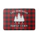 Una elegante alfombra de baño rústica de estilo rústico, con su nombre y "Cabina Familiar", Rancho, Cabaña u otro texto junto con su fecha y ubicación establecidas si lo desea. Este diseño personalizado y único presenta encantadores textos rústicos de estilo rústico con una silueta blanca de pinos sobre una clásica estampada de búfalo rojo. Perfecto para las vacaciones de sus navidades o en cualquier época del año. Para ver más diseños como este, por favor visite mi tienda aquí en "Zazzle.com/Store/Rustic_Charm". ¡Gracias.