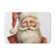 A bath mat with a cute retro style illustration. Santa Claus with a bushy white beard wearing his traditional red suit.