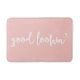 Moderna y elegante alfombra de baño rosa de color rosa con tipografía con letras a mano. Este diseño está disponible en una variedad de colores.