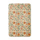 Seamless floral pattern featuring orange and red flowers with green leaves on a beige background. The design is vibrant and decorative.