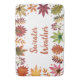Un diseño de bonito para la temporada de otoño con hojas de otoño dibujadas a mano en tonos marrones, amarillos y verdes. Personalizar el texto a lo que quieras.