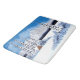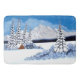 Una alfombra de baño con una hermosa escena de invierno que incluye montañas nevadas, cabaña rústica y verduras cubiertas de nieve. Obra de arte original de W.B.