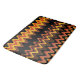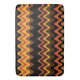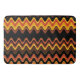 Un diseño artístico de olas que se originan en una puesta de sol sobre el mar, lleno de colores ricos de marrón, amarillo y naranja.