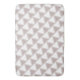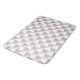 Tonos blandos de rubor, contrastan con un patrón geométrico en esta alfombra de baño.
