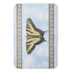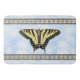 This design is of a black and yellow Western Swallowtail butterfly, one of the most beautiful large butterflies in the world, floating on a blue sky with puffy white couds. Bordered with southwest style geometric butterfly symbols. My original painting is based on photographs I took in my own butterfly-friendly garden in the Southwest.