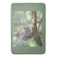 Esta alfombra de baño cuenta con una ardilla que come en la parte alta de un pinar. Ideal para el cuarto de baño o donde quieras un cojín bajo tus pies.