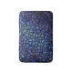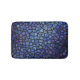 This vibrant bath mat features a close-up of an abstract mosaic pattern in shades of blue and purple, featuring irregular black outlines creating a stained glass effect with textured details. Finished in a mixed media art print.