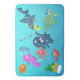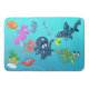 Estera de baño con hermosas criaturas marinas personalizados, incluyendo pulpo y calamar, tiburón, pescado, caballitos de mar, tortuga marina y cangrejo. Ilustraciones ©2019 Michael C. Paul