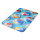 Description step out of the tub and straight into a pool party with our summertime splash flush bath mat this vibrant design features classic multicoloured beach balls floating in a sea of electric blue water and shimmering bubbles. The high definition pattern brings a bold refreshing energy to your bathroom floor making it the perfect companion to our matching shower curtain soft absorbent and full of summer joy. This is a fun way to keep your toes cozy and your day