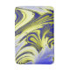 An abstract design originating from river water producing swirls of blue, yellow and white.