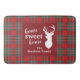 Alfombra de baño navideña de dulce hogar que puedes personalizar fácilmente haciendo clic en el botón "Personalizar". Cuenta con la silueta de un ciervo y el tartán del clan MacTavish en un patrón de cuadros verdes y rojos.