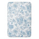 Refresh your bathroom decor with our new bath mat, featuring an elegant Toile-de-Jouy Chinoiseries blue floral pattern beautifully framed on a custom white background.
