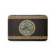 Diseño de la Tríada del Lobo Celta, Richalmente entrelazados nudos celtas que crean la forma de un lobo y están rodeados de una corona de nudos, enmarcados en patrones más intrincados. Una gran cultura, historia y patrimonio, todo sobre un fondo marrón oscuro (chocolate) simulando cuero antiguo. Para los antiguos celtas, el lobo era un animal sagrado. El lobo permitió a uno de los grandes héroes celtas, celta, que se mamaba de ella, como un lobo alimentó a Romulus y Remus, los míticos fundadores de Roma. Celt consideraba a los lobos, no como cazadores poderosos, sino como símbolos de inteligencia y lealtad y como guías del camino correcto, mediadores de transformación y compañeros de las deidades de la fertilidad, la Luna, la naturaleza y el inframundo. Personalizar a su gusto.
