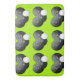 En verde lima se pueden ver cuencos y un gato en un patrón repetido